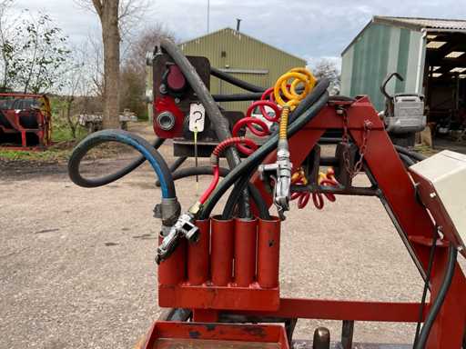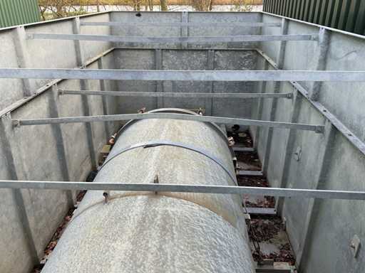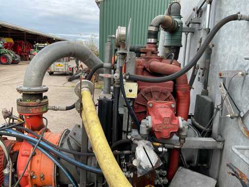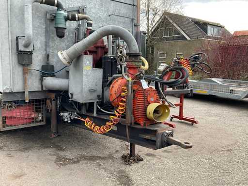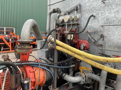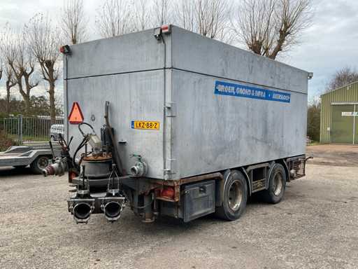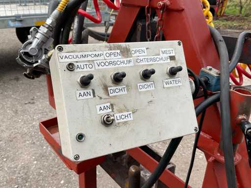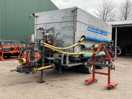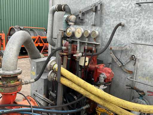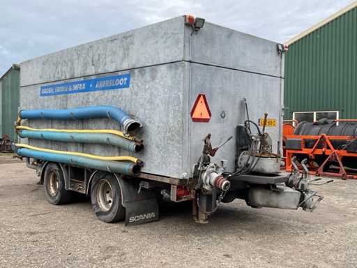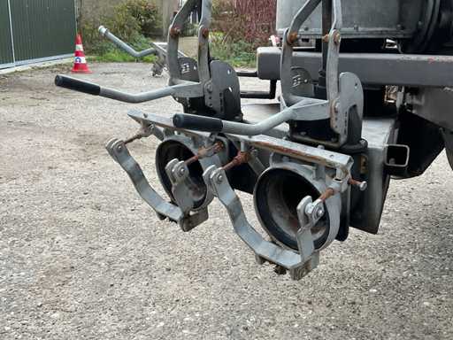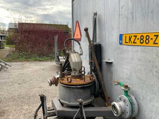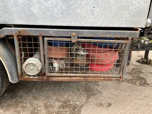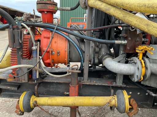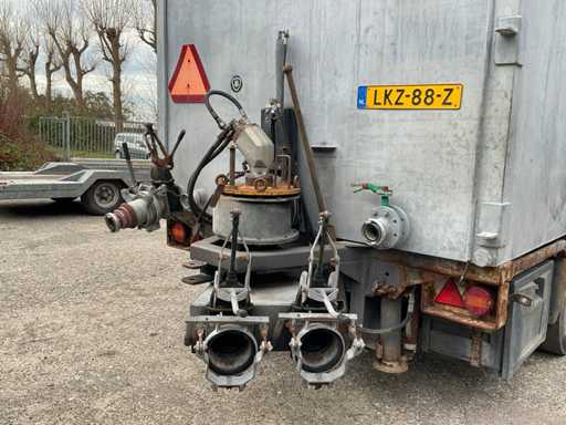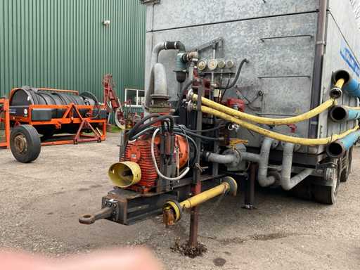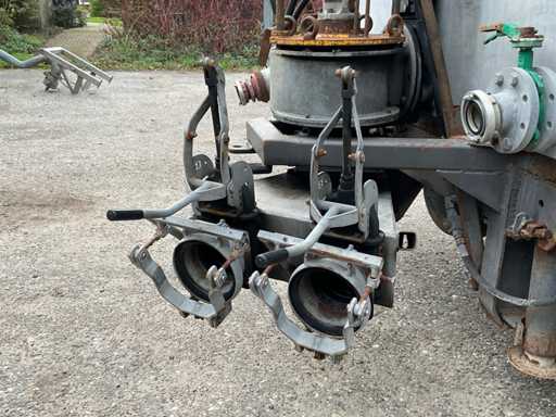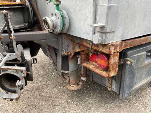 essieu tandem ; équipé d’une glissière avant et arrière ; installation de pompes ; réservoir en acier galvanisé ; capacité 3000 litres ; avec double embrayage ; 25 m3, réservoir dim. env. 6000x2350x2000 mm, 2x tuyau d’aspiration 6 » 4 m, tuyau d’extension 1x6 » 4 mtr, turbo remplisseur, pompe à lisier doda AFI35, vitesse réduite, pompe à vide, compteur d’eau électronique, chevalet Accord avec raccordement, tuyau d’eau env. 30 m 2,5 », béquilles hydrauliques,