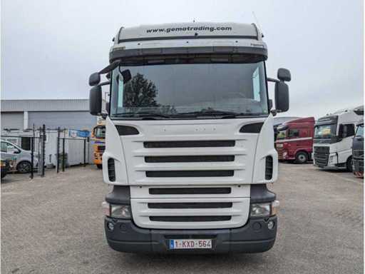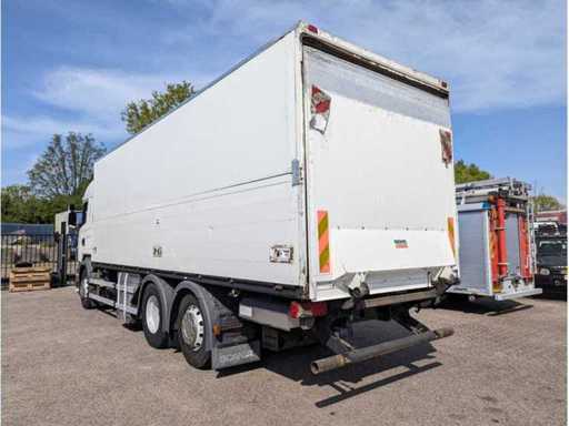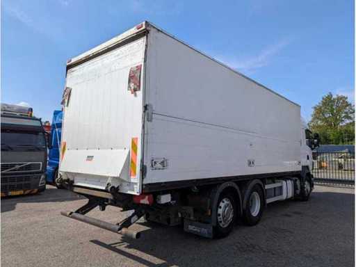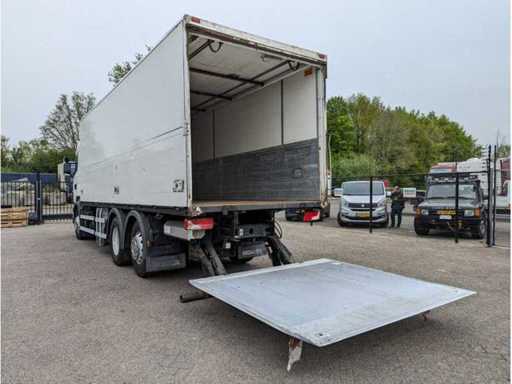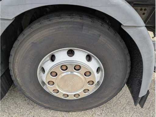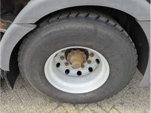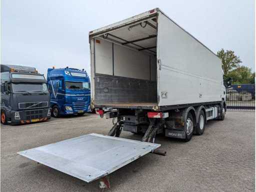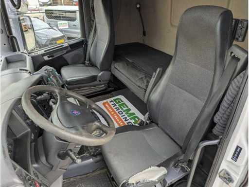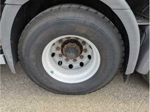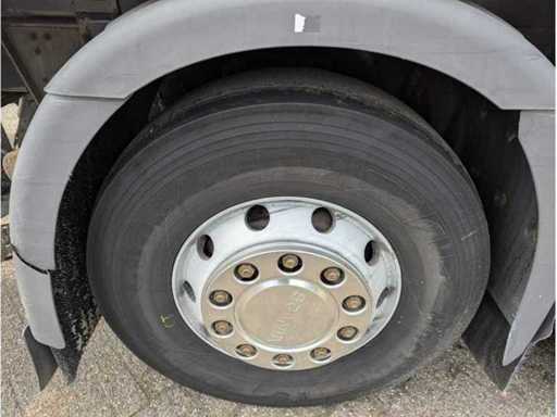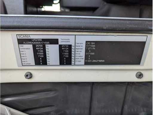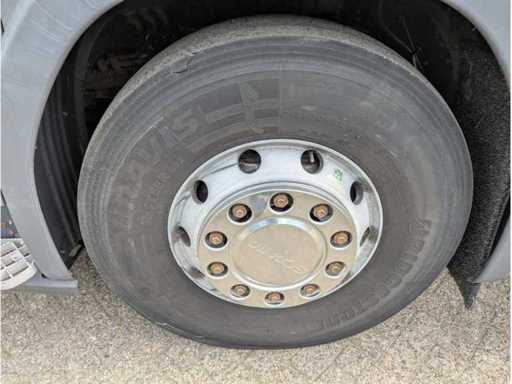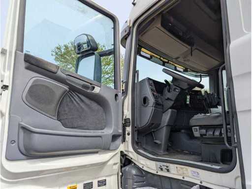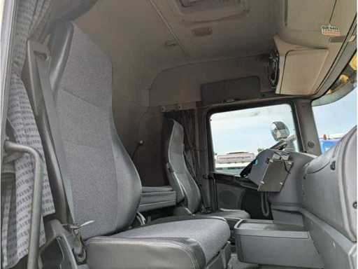 Équipée d’une cabine de couchette « Highline » CR19H, de la superstructure « Böse » de 2007 (776x249x234 cm), de la « B.A.R. » Hayon cargo lift (maximum 2000 kg), jantes « Alcoa », 3e essieu levable et direction auto-orientée, compte-chocs numérique, contrôle de stabilité (ESP), frein moteur, électrique. verst. rétroviseurs extérieurs, ordinateur de bord, rétroviseurs extérieurs chauffants, volant réglable en hauteur, serrure, radio/lecteur CD, centre de la pièce. Verrouillage des portes, climatisation, direction assistée, contrôle de stabilité, freins à disque, phares antibrouillard, électricité. Fenêtres ouvrables, plateau audio. Au volant, contrôle de traction, chauffage de stationnement, limiteur de vitesse, volant multifonction, boîte à outils, centre de chauffage. Serrure de porte. télécommande, pare-soleil, ABS, essieu de direction, différentiel à glissement limité, filtre à particules, régulateur de vitesse et ALU. Réservoir de carburant