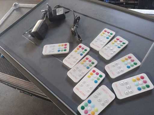 Lot comprenant 9 CANDY Light IR 10W, 2 chargeurs, 9 télécommandes, 1 plaque de charge avec couvercle. Les photos peuvent ne pas refléter les quantités proposées. Seul le descriptif ci-dessus est contractuel.