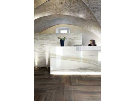 Carrelage Bois Chêne Choco 20x180cm rectifié, 57.6m2, épaisseur 9mm, fabriqué en Italie, carrelage de sol et de mur en céramique, résistant au gel et aux rayures, 1 palette 100x200cm, poids env. 1250kg