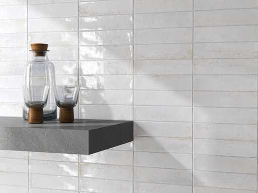 Carrelage industriel blanc brillant 7,5x30cm, 48m2, carreau mural décoratif, 1 palette 80x120cm, poids environ 676kg