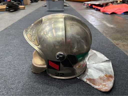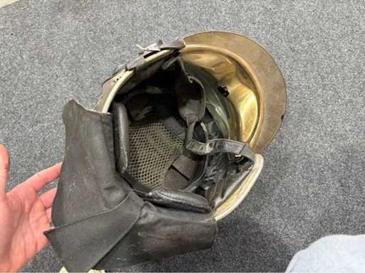 Casque de pompier original du Luxembourg dans le design classique des Sapeurs-Pompiers. Condition usée avec signes visibles d’usure, mais complète et incluant visière, intérieur et collier de protection thermique. Idéal comme objet de collection, décoration ou musée.