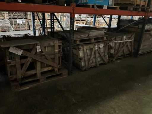 Dans une boîte à palette 3x, composée de 3 largeurs différentes 58+28+88 cm, dans une boîte à palettes