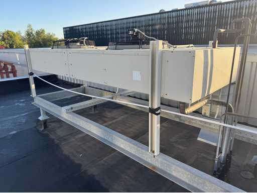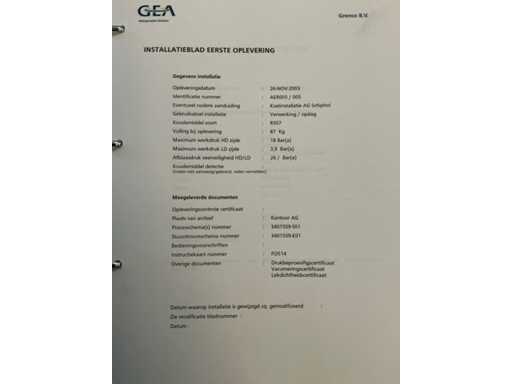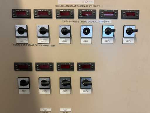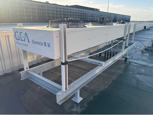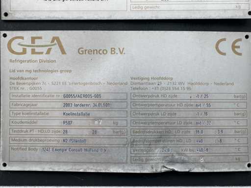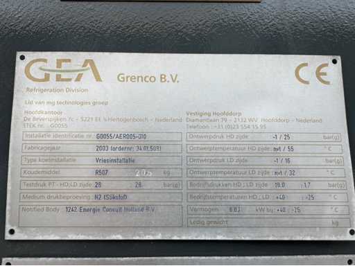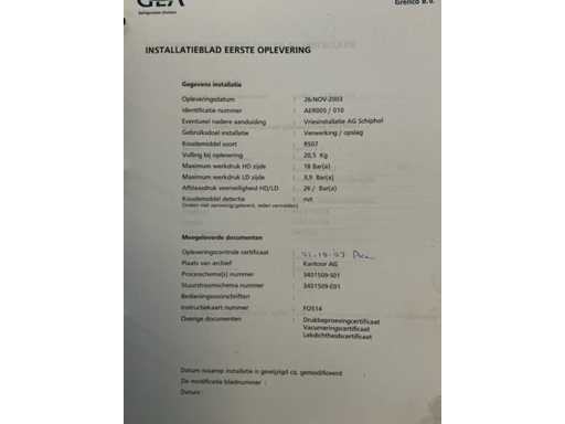 Le lot comprenait une unité Bitzer avec 3 compresseurs ; 2 réservoirs de réfrigérant sur l’unité ; divers mètres ; thermostats et autres accessoires ; 2 refroidisseurs ; 1 avec 2 ventilateurs et 1 avec 1 éventail ; avec une borne de contrôle ; adapté à 14 départements ; peuvent être exploités séparément ; avec 15 boîtes de contrôle avec thermomètre ; contrôlable numériquement ; des journaux sont disponibles ; l’installation a été utilisée au département PHARMA de Schiphol ; toujours bien entretenu ; L’installation a été interceptée par une entreprise agréée ; l’installation est démontée et préparée pour le transport par le vendeur ;