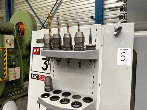 équipé d’une table de serrage en T d’environ 1200x450 mm ; largeur de pince de la machine 150 mm ; poste d’outillage comprenant 40 porte-outils équipés d’outils ; machine équipée d’un convoyeur à puces à broche intégré ; équipé de liquide de refroidissement de broche TSC ; station de filtration de liquide de refroidissement ; électrique, armoire de contrôle ; capot sur le dessus de la machine démonté ; perturbation; non opérationnelle ;