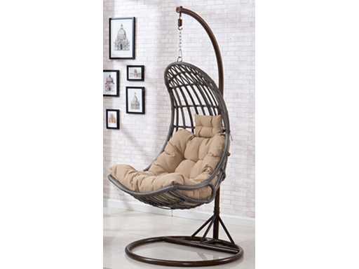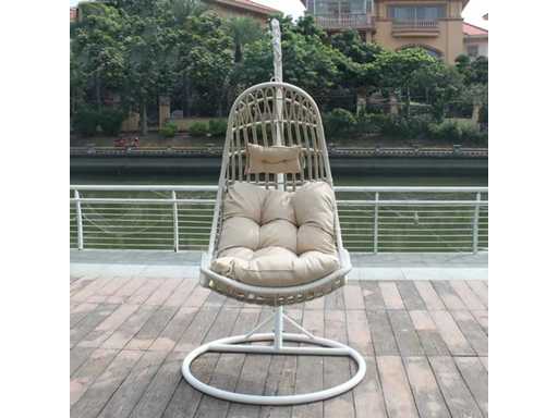 Type : SWING-71. Couleur : Cadre blanc / coussins moka. Dimensions : panier : L80*H110*D75 cm, perche : H195 cm, Base : 95 cm