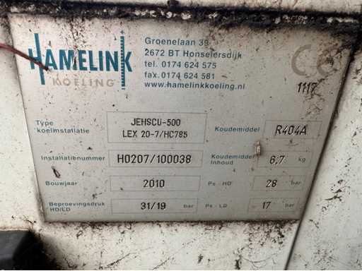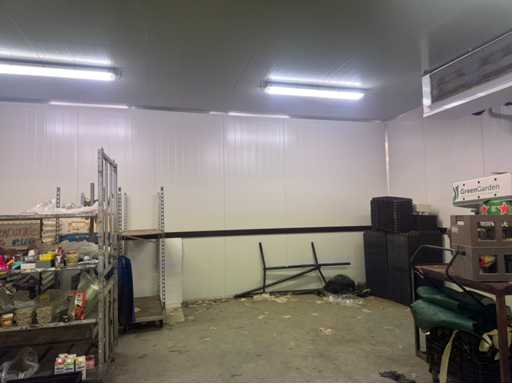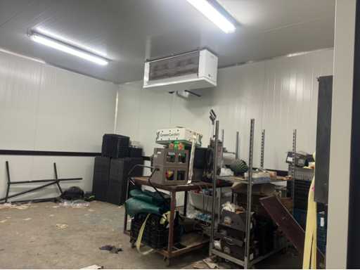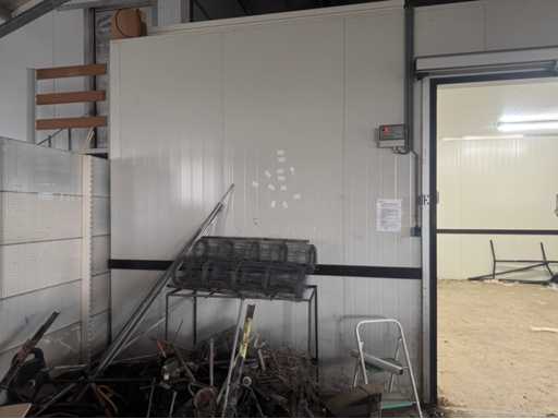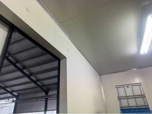 La hauteur de la cellule à l’intérieur est de 3380 mm ; La porte mesure 2050 mm de large et 2850 mm de haut ; les panneaux font 100 mm d’épaisseur ; avec un évaporateur dans le réfrigérateur ; avec une unité extérieure ; 4 boîtes fluorescentes ; est démontée et préparée pour le transport par le vendeur ;
