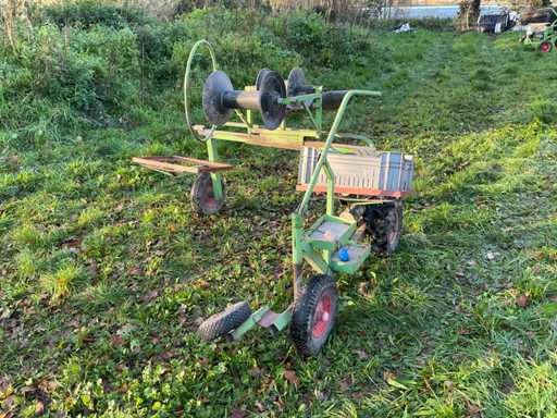 Équipé de : chariot à asperges, entraîné électriquement, tube guide pour le papier aluminium, rouleau pour le foil de conduction, cadre pour boîtes à poteaux, 1 roue dirigeable, 7 pièces en promotion.