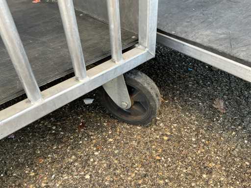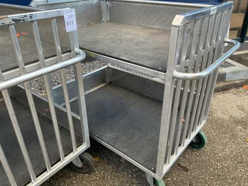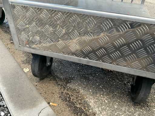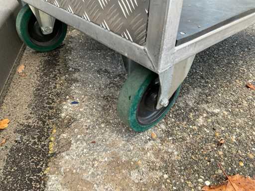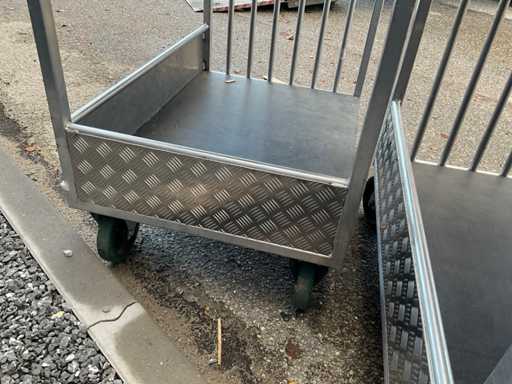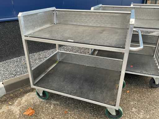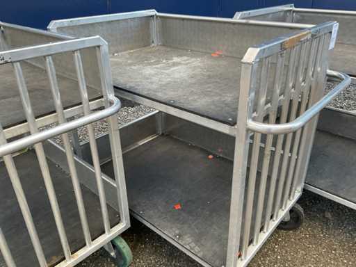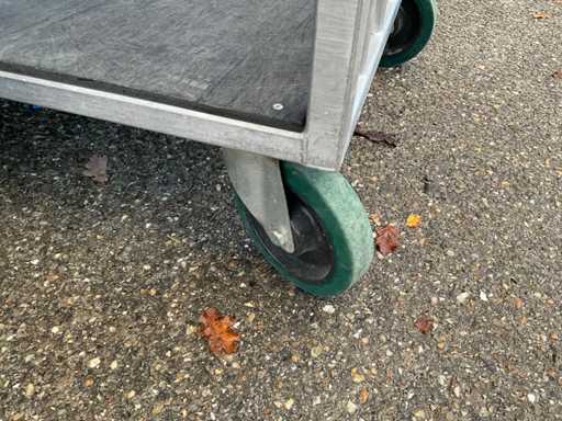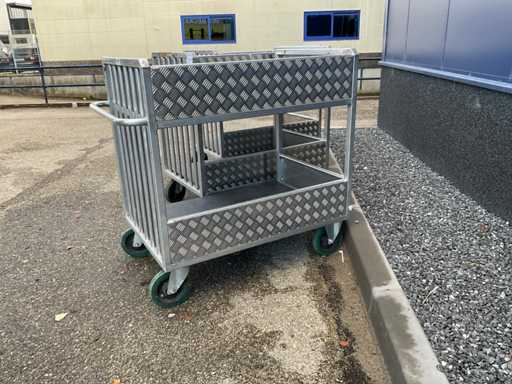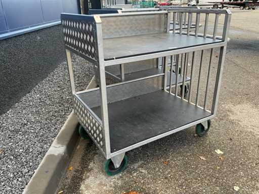 Chariot de préparation de commandes/chariot de transport à 2 niveaux, env. 105x75 cm, poignée, 2 roues pivotantes et 2 roues fixes, construction en aluminium.