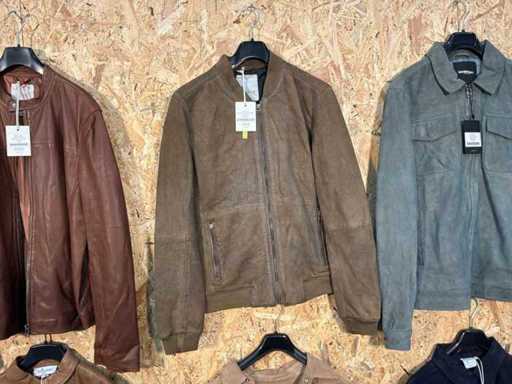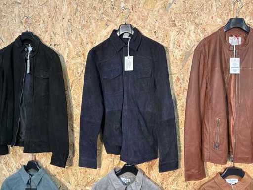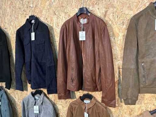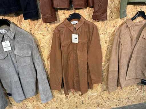 Divers vestons et chemisiers en cuir pour hommes et femmes dans différents modèles, couleurs et tailles.