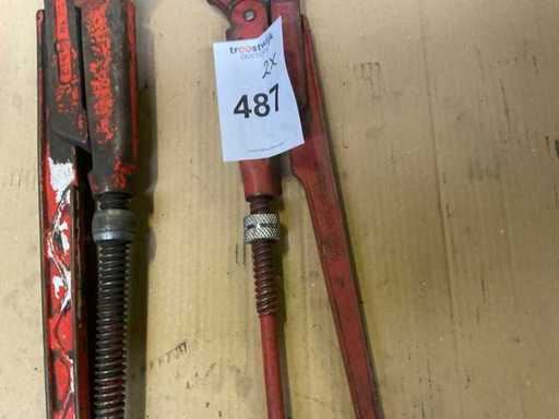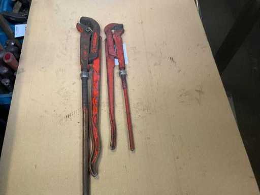 Clé à tuyau à angle en une pièce VBW n° 110, longueur 70 cm et 1 pièce en Holex, longueur 50 cm