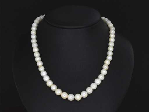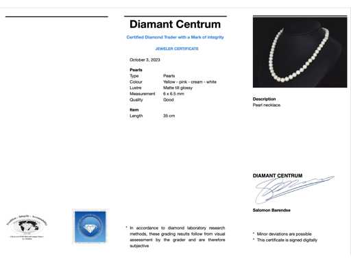 ascendant Perle : Perle ; Couleur : Jaune - Crème - Blanc - Rose ; Taille : 6 - 6,5 mm ; Brillant : Brillant ; Qualité : Bonne ; Joyau : Collier ; Dimensions/longueur : 35 cm ; État : Neuf ; Emballage : Boîte à bijoux de luxe ; Explication : La qualité a été prise du rapport correspondant à l’article. L’évaluation est une évaluation d’un négociant certifié en diamants, basée sur les prix à la consommation ; Prix à la consommation : 440 €,-