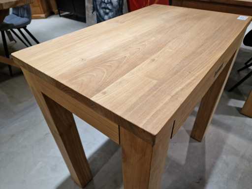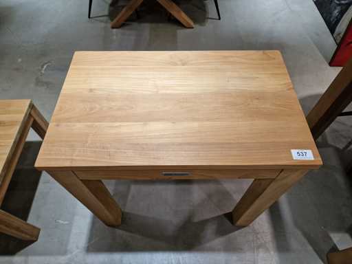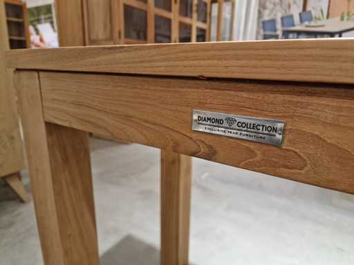 Console murale en teck diamant 80 x 50 cm naturelle droite avec pieds en blocs pleins - peut aussi servir de table de bureau ou de table d’appoint