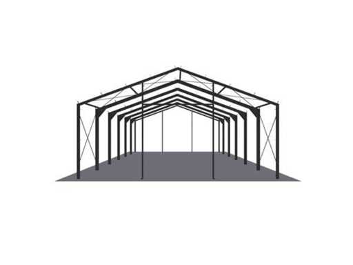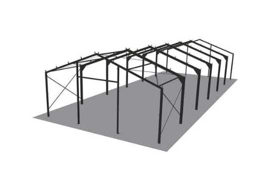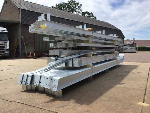 1 poutre d’extrémité : 2x colonne d’angle I160 : 2x poutre de toit I140 : 2x colonne intermédiaire U160 et 1x poutre de porte U160 à 4 mètres
