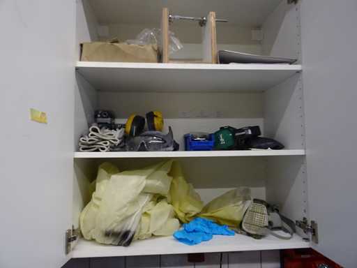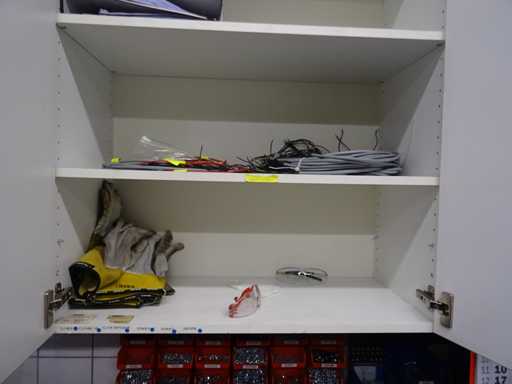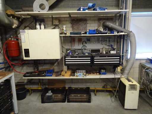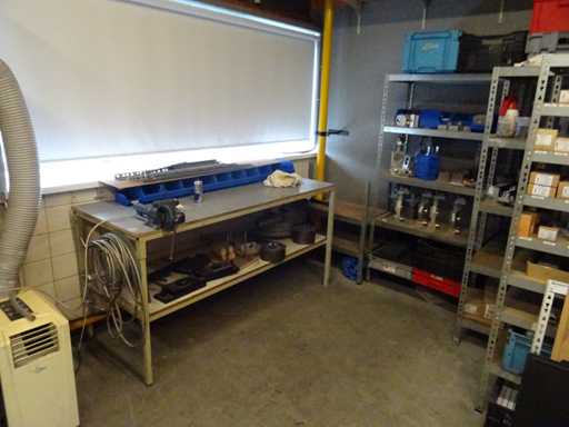 concerne diverses pièces, matériaux d’assemblage et de montage, divers outils et tiroirs à outils, moteurs électriques, établis, racks, contenu de l’étage supérieur, système PC (sans disque dur). Exclure la nature et les affaires solides
