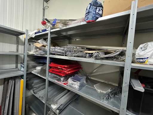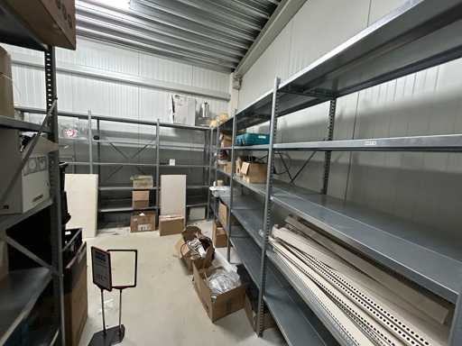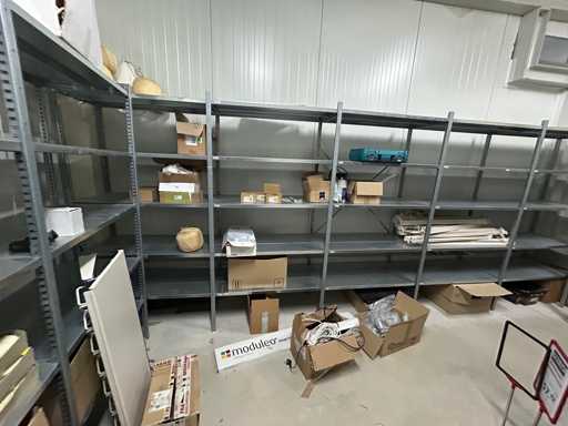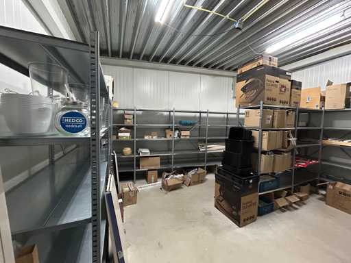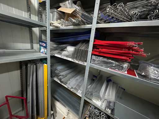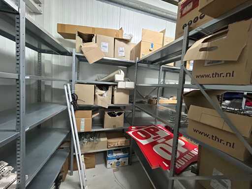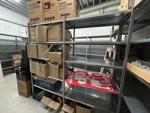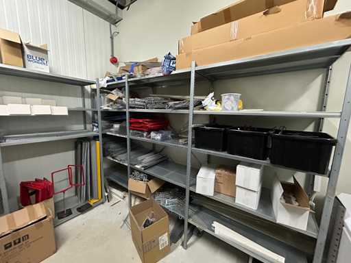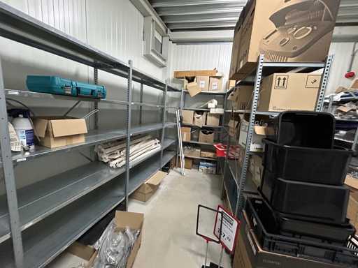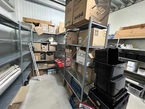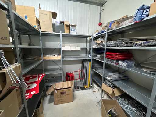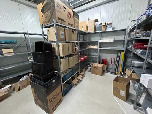 Le contenu des étagères comprenant : pièces de magasin, stock, produits retournés, publicités et supports promotionnels