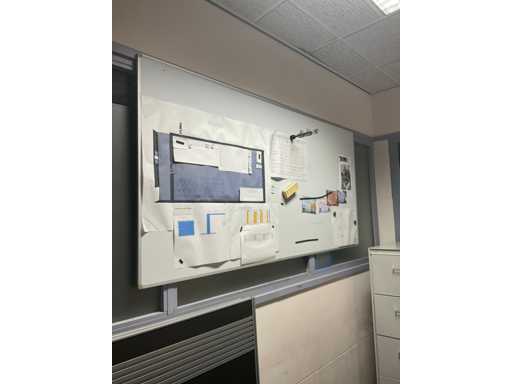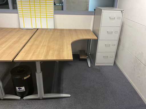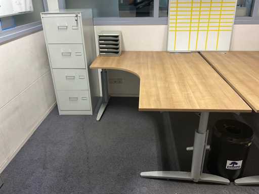 Composé de bureaux réglables en hauteur, de classeurs, de tableaux blancs, etc.,