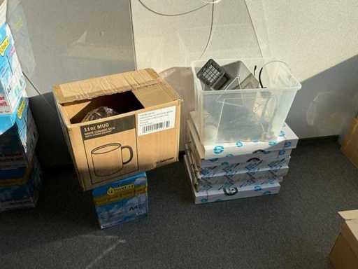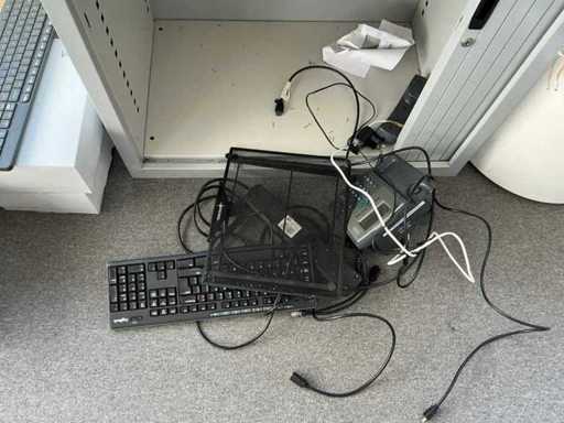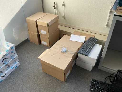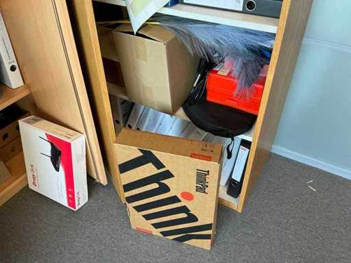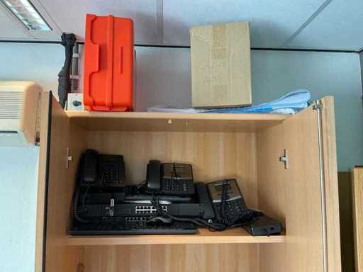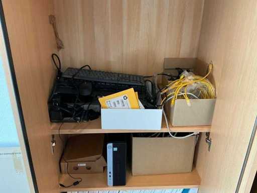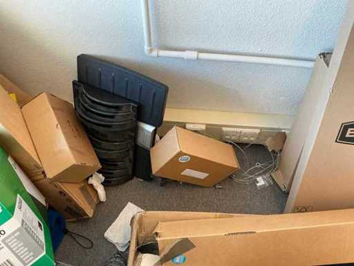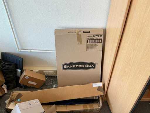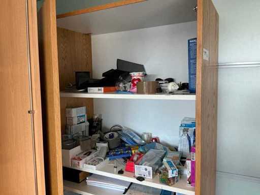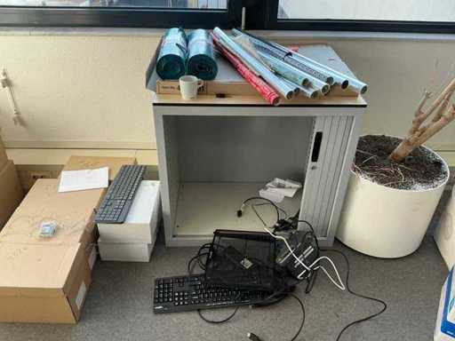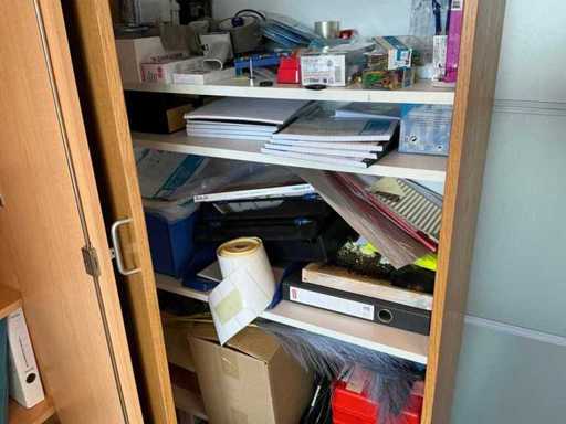 2 armoires de bureau (80x43x200cm et 89x42x217cm) avec contenu, 1 couche d’armoires à classeurs, 2 chariots de transport, périphériques TIC, papier, enveloppes, etc. L’administration doit être laissée pour compte.