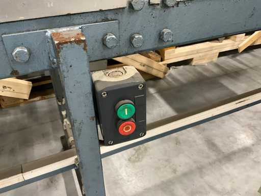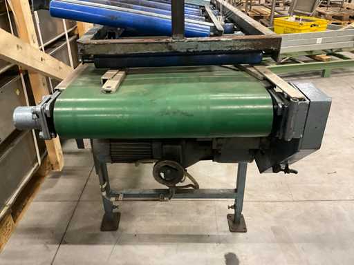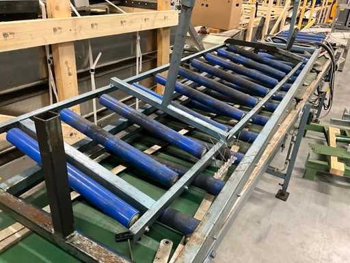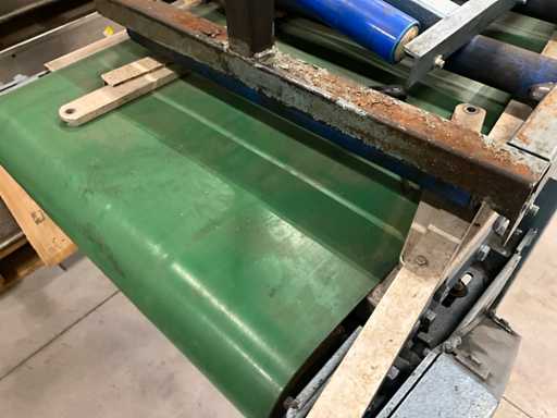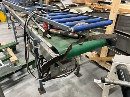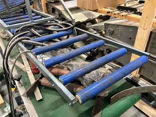 Composé d’un tapis roulant de dimensions 440 x 70 x 86 cm, avec 2 convoyeurs à rouleaux variés, dont 400 x 60 x 94 cm, 210 x 60 x 94 cm