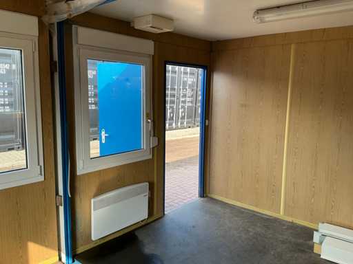 Equipé de chauffage électrique, prises, éclairage, fenêtres oscillo-battantes avec volets, boîte de groupe, œillets releveurs, trous de cuillère