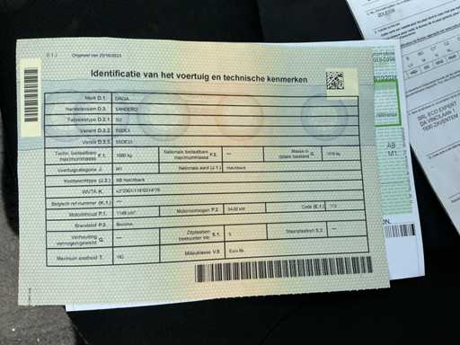 contient les dommages corporels, clé OK, certificat d’enregistrement partie 1 présent, partie 2 manquante, certificat de conformité non présent (2DLE039)