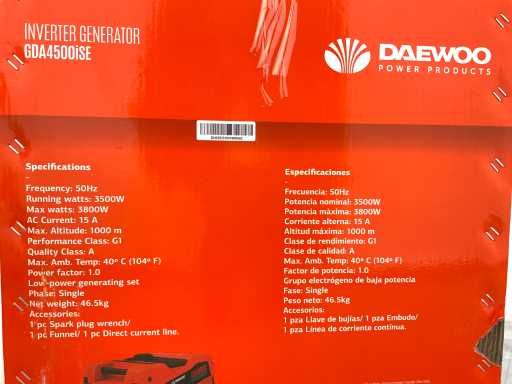 Daewoo - GDA4500ISE - Groupe électrogène Inverter 3800W 15A - 2023