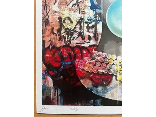 Son style unique évoque les influences de Banksy, Basquiat, Warhol et Murakami, combinant provocation, humour et esthétique urbaine.