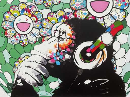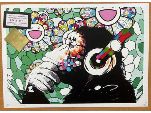 DEATH NYC : Banksy DJ Monkey & Murakami Flowers 71/100