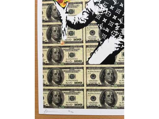 Son style unique évoque les influences de Banksy, Basquiat, Warhol et Murakami, combinant provocation, humour et esthétique urbaine.