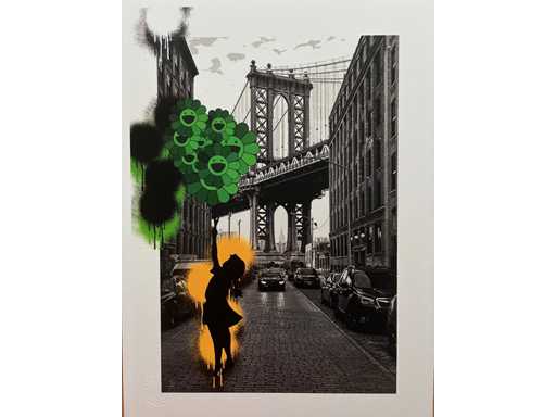 DEATH NYC : Bsnksy Girl with Ballon & Brooklyn Bridge