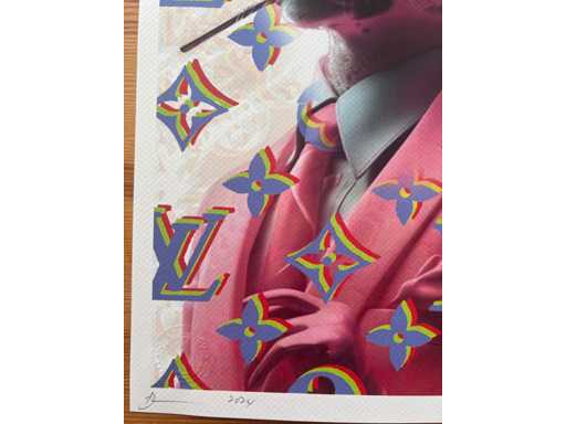 Son style unique évoque les influences de Banksy, Basquiat, Warhol et Murakami, combinant provocation, humour et esthétique urbaine.