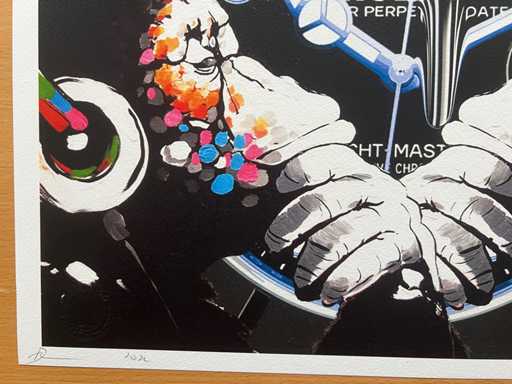 Son style unique évoque les influences de Banksy, Basquiat, Warhol et Murakami, combinant provocation, humour et esthétique urbaine.