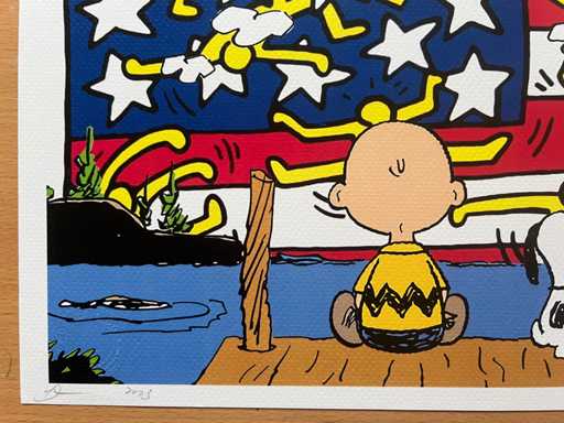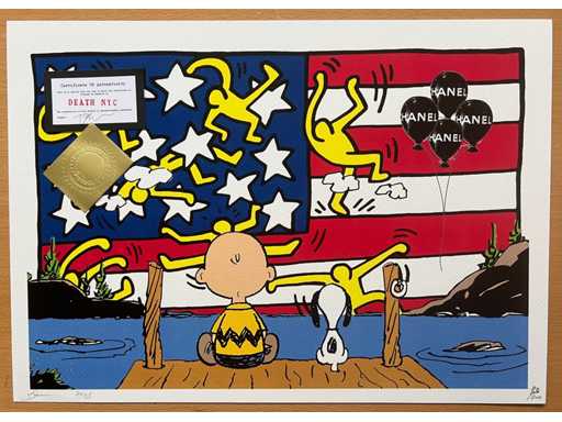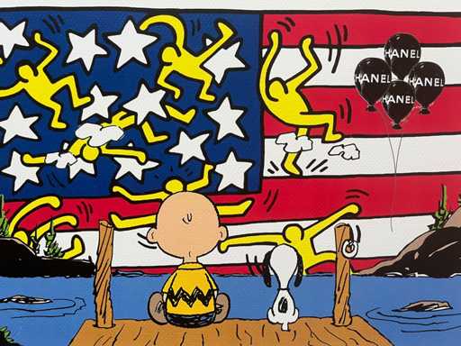 DEATH NYC : Snoopy with Charlie & US Keith Haring Flag 80/100