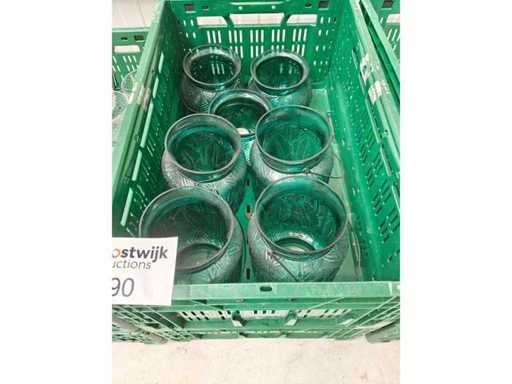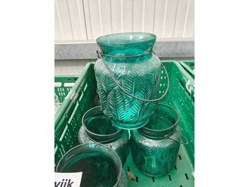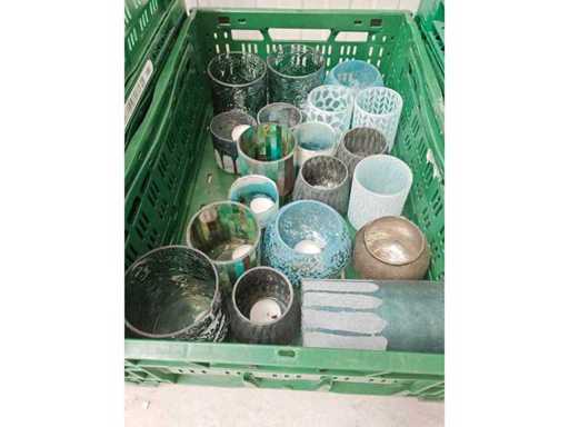 2 boîtes de transport contenant un lot de bougeoirs d’environ 16 pièces, couleur bleue, de différentes tailles