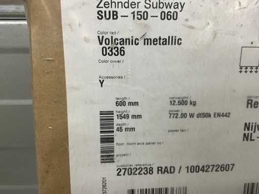 Décorradiateur Zehnder Subway 1549x600 772W
