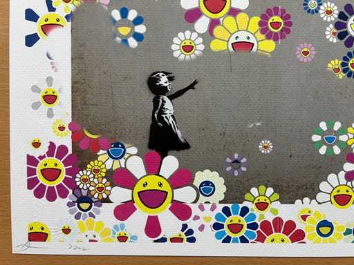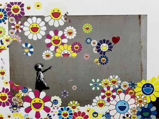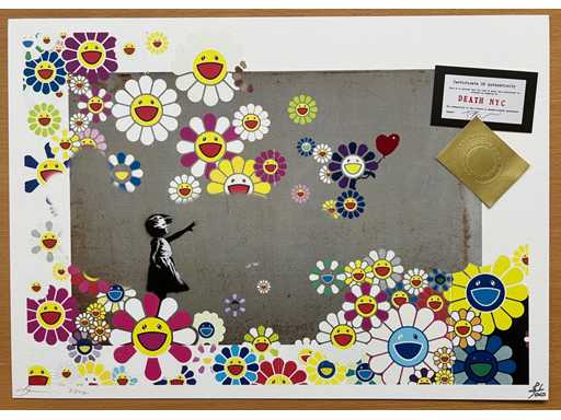 DESTH NYC : Banksy Girl with Balloon & Murakami Flowers 81/100