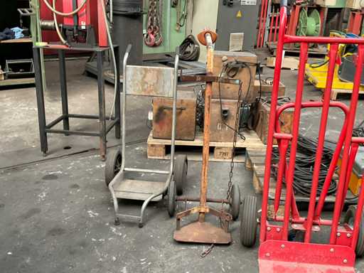 y compris le wagon de bouteilles de gaz et la brouette en pierre