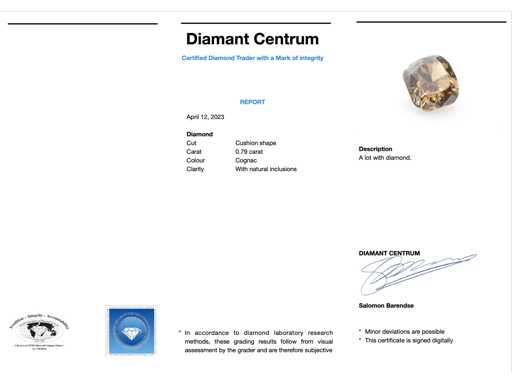 Diamant : Naturel ; Quantité : 1 pièce ; Coupe : forme de coussin ; Poids (carat) : 0,79 carat ; Couleur : Cognac ; Pureté : Avec des inclusions naturelles ; État : Neuf ; Emballage : Boîte à gemmes ; Explication : La qualité a été prise du rapport correspondant à l’article. L’évaluation est une évaluation d’un négociant certifié en diamants, basée sur les prix à la consommation ; Prix à la consommation : 1 960 €