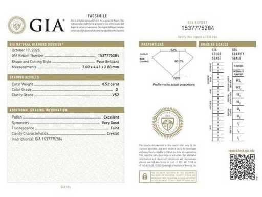 Diamant de vraie poire naturelle avec certificat GIA - 0,52 carat