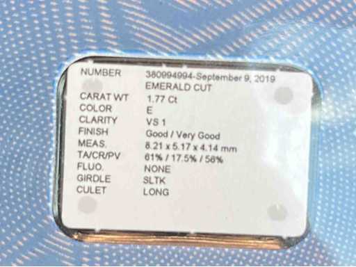 données Diamant - 1,77 carat diamant naturel taille émeraude