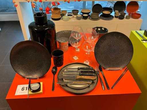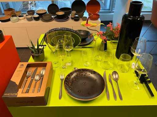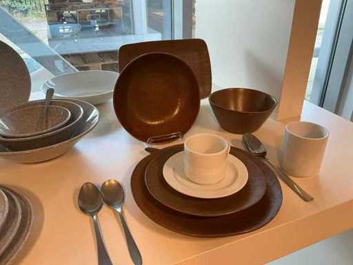 Y compris les tasses à café, assiettes, bols, sous-verres, bols à soupe, couverts, apéritifs, etc. Issue selon les instructions