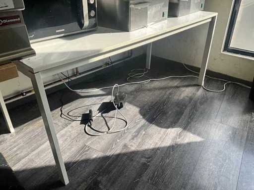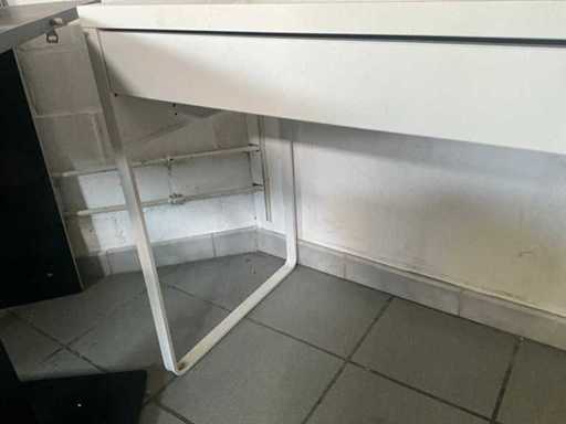 Incluant des dimensions de 142 x 50 x 75 cm avec 2 tiroirs, une table à base métallique de 125 x 75 x 74 cm et 175 x 75 x 74 cm