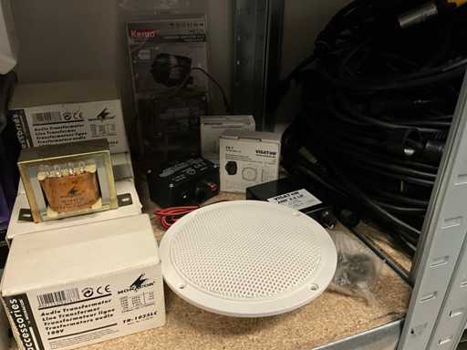 Composé de « Behringer » eurolife B205D ; BA mobile « Roland » ; « ART » MacroMix ; moniteur « Samson » S ; 7x « Behringer » HA400 ; 6x transformateurs audio « Moncor » ; 3 microamplificateurs ; câbles d’extension mini-jack ; 33 supports pour écouteurs et 2 caisses d’écouteurs