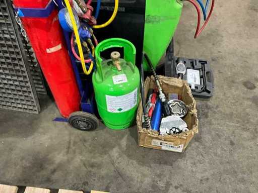 équipé de bouteilles, chariot à bouteilles, presse, détecteur de gaz,