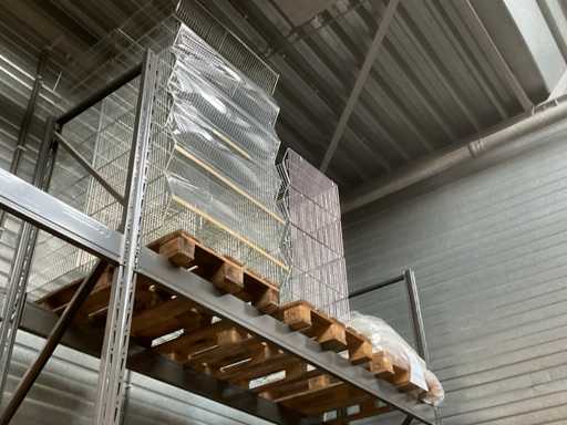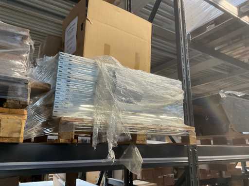 Composé de divers montants, poutres, étagères/assiettes, chariots et divers