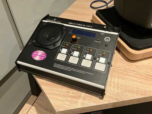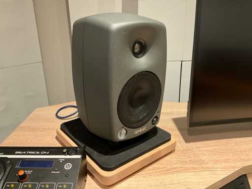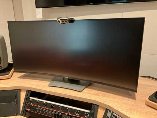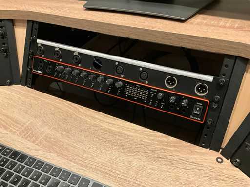 L’équipement comprend : Focusrite Scarlett 18i20, commutateur HP JD992A, souris experte Kensington K64325, interphone audio réseau 4 canaux Glensound Beatrice D4, 2 haut-parleurs actifs Fostex 6301B, 2 moniteurs actifs numériques Genelec 8130A, Dell Ultrasharp U3818DW un écran ultra-large incurvé de 38 pouces et un moniteur Sony Bravia