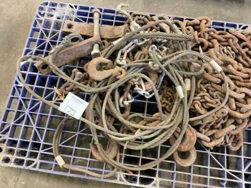 Y compris la chaîne de levage, le câble d’acier tressé. Sur et avec la palette