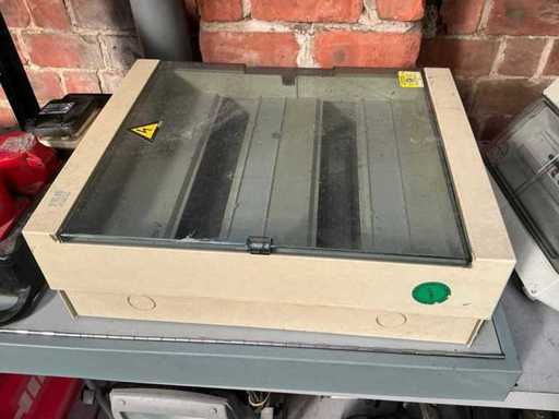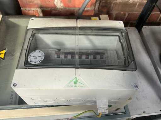 Incluant un boîtier de distribution 400V, un boîtier de modules 12 avec différentiel et une boîte automatique 2x. 1x module Fix-o-Rail 36 de Vynckier. Grande armoire à clés en métal