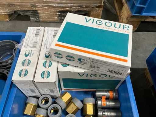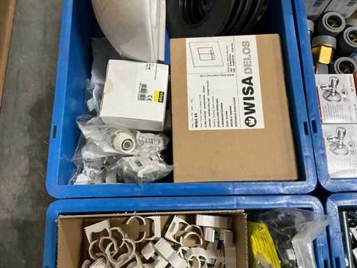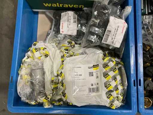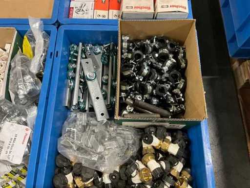 Composée notamment de : réducteur Viega Megapress 1,1/4" x 1, touche d’appui x, supports Flamco VSA, prises Fischer, robinets Schell, panneau de contrôle Wisa, etc