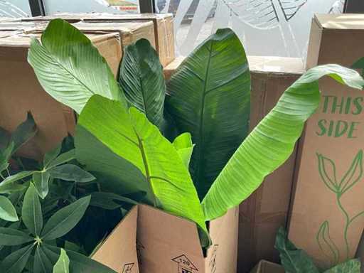 Composée de diverses plantes artificielles, notamment : Medinilla 85 cm, Strelitzia 165 cm, fougères 80/100 cm, etc